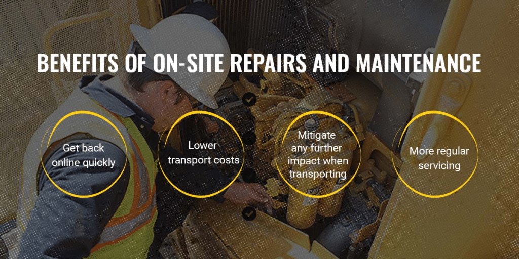 Maintenance field service: A field service technician can complete regular maintenance and inspections on your machines at the jobsite. It’s a good idea to service your equipment on-site, rather than in a workshop, so you can start working immediately after any checks are complete. This also avoids having to transport your machine back to the site.