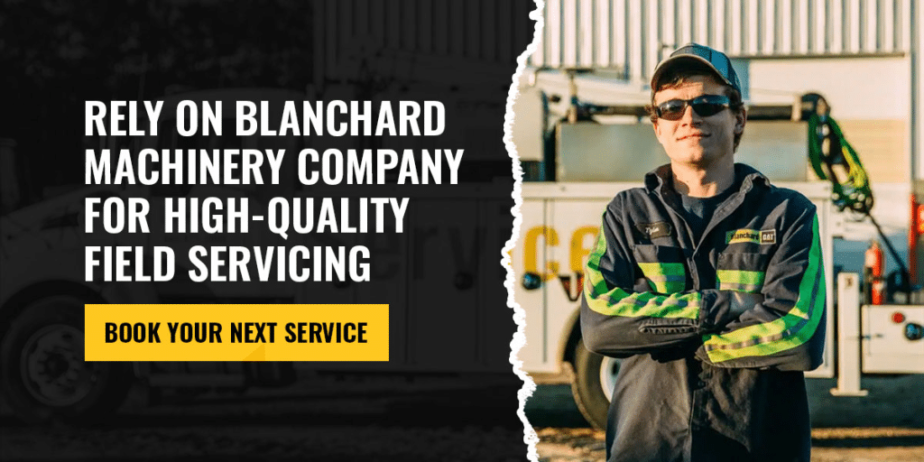 When you work with a reliable partner like Blanchard Machinery Company, you can find local technicians who can exceed your field service expectations by quickly responding to an emergency call, even after hours. For routine maintenance, review the recommended service intervals for your machine.